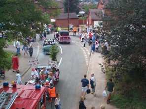 | The floats trying to squeeze into Ledbury Primary School since the building of houses. | Oh good, they just managed to get in |
